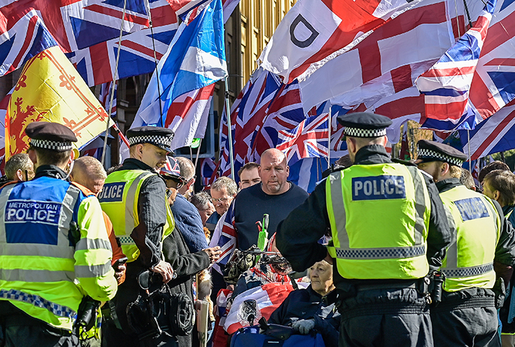 Londra Polisi, “Krallığı Birleştir” sloganıyla yürüyen protestoculardan 25’inin polise saldırılar ve düzeni bozmaktan gözaltına alındığını açıkladı.